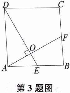 3. 如图,在正方形ABCD中,E为AB的中点,AF⊥DE于点O,则AO:DO =(