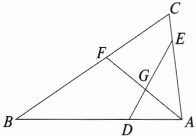 3. 如图,在 $ \triangle ABC $ 中,点 $ D $,$ E $ 分别在 $ AB $,$ AC $ 上,$ AF $ 平分 $ \angle BAC $,交 $ DE $ 于点 $ G $,$ AE = 3 $,$ EC = 1 $,$ AD = 2 $,$ BD = 4 $. 求 $ AF:AG $.