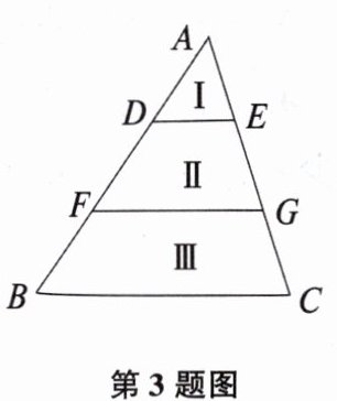 3. 如图,$ AD = DF = FB $,$ DE // FG // BC $,则 $ S_{Ⅰ}:S_{Ⅱ}:S_{Ⅲ} = $