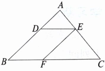 4. 如图,点 $ D $,$ E $ 分别是 $ \triangle ABC $ 边 $ AB $,$ AC $ 上的点,且 $ DE // BC $,$ EF // AB $,$ BD = 2AD $,那么 $ \triangle ADE $ 的面积与 $ \triangle EFC $ 的面积比为