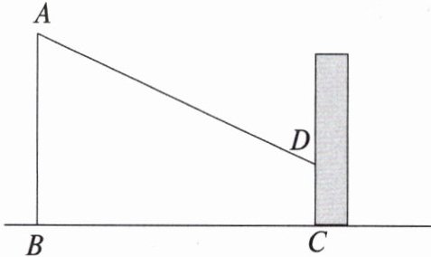 变式2:如图,在某一时刻,旗杆AB的影子的一部分在地面上,另一部分在建筑物的墙面上。小明测得旗杆AB在地面上的影长BC为9.6m,在墙面上的影长CD为2m。同一时刻,小明又测得竖立于地面上长1m的标杆的影长为1.2m。请帮助小明求出旗杆的高度。