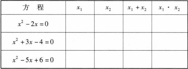 2. 将上面得到的解填入下面的表格中. 你发现表格中两个解的和与积与原来的方程有什么联系?