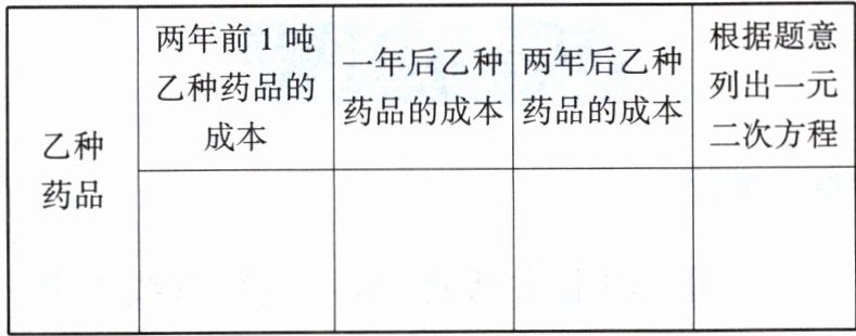 根据下表求出乙种药品的年平均下降率,比较两种药品哪个的年平均下降率大.