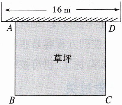 4. 如图,某幼儿园有一道长为16 m的墙,计划用32 m长的围栏靠墙围成一个面积为120 m²的矩形草坪ABCD. 求该矩形草坪BC边的长.