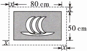 1. 在一幅长80 cm、宽50 cm的矩形风景画的四周镶一条金色纸边,制成一幅矩形挂图,如图所示. 如果要使整个挂图的面积是5 400 cm²,设金色纸边的宽为x cm,那么x满足的方程是().