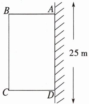 【例2】为了改善小区环境,某小区决定在一块一边靠墙(墙长25m)的空地上修建一个矩形绿化带$ABCD$,绿化带一边靠墙,另三边用总长为40m的栅栏围住. 若设绿化带的边$BC$为$x$m,绿化带的面积为$y$m²,求$y$与$x$之间的函数关系式,并写出自变量$x$的取值范围.