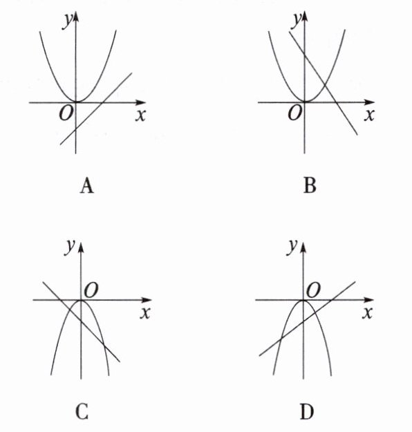2. 如图,当 $ ab > 0 $ 时,函数 $ y = ax^2 $ 与 $ y = bx + a $ 的图象大致是(