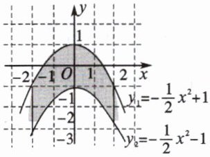 2. 已知抛物线 $ y = ax^2 + k $ 如图所示, 两条抛物线与分别过 $ (-2, 0) $, $ (2, 0) $ 且与平行于 $ y $ 轴的两条直线围成的阴影部分的面积为