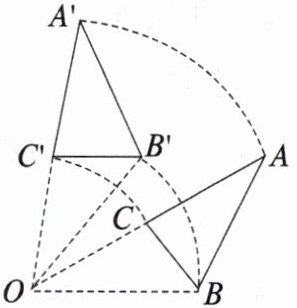 4. 如图,$\triangle ABC$绕点$O$按逆时针方向旋转$45^{\circ}$得到$\triangle A'B'C'$,则点$B$的对应点是点,线段$OB$的对应线段是线段,线段$AB$的对应线段是线段,$\angle A$的对应角是,$\angle B$的对应角是,旋转中心是点,旋转的角度是。
