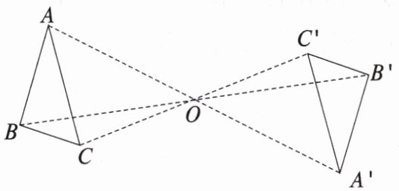 因为$\triangle A^{\prime}B^{\prime}C^{\prime}$与$\triangle ABC$关于点$O$成中心对称,所以: