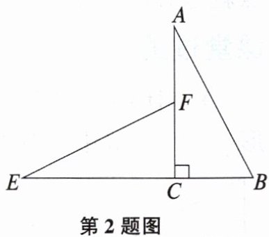 2. 如图,在平面内将 Rt△ABC 绕着直角顶点 C 逆时针旋转 90°得到 Rt△EFC。若 AB = √{5},BC = 1,则线段 BE 的长度为。