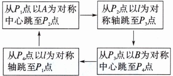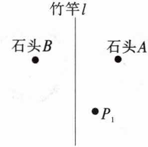 4. 如图,石头 A 和石头 B 相距 80 cm,且关于竹竿 l 对称。一只电动青蛙在距竹竿 30 cm、距石头 A 60 cm 的 P₁ 处按如下顺序循环跳跃: