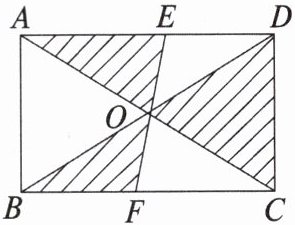 【例 2】如图,矩形 $ ABCD $ 的对角线 $ AC $ 和 $ BD $ 相交于点 $ O $,过点 $ O $ 的直线分别交 $ AD $ 和 $ BC $ 于点 $ E $,$ F $,$ AB = 2 $,$ BC = 3 $,则图中阴影部分的面积为。