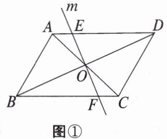 (1) 如图①,直线 $ m $ 经过 $ □ ABCD $ 对角线的交点 $ O $,则 $ S_{四边形AEFB} $