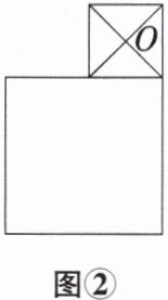 (2) 两个正方形如图②所示摆放,$ O $ 为小正方形对角线的交点,求作过点 $ O $ 的直线将整个图形分成面积相等的两部分。