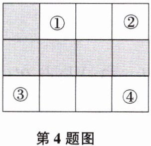 4. 如图是 $ 3 × 4 $ 的正方形网格,其中已有 5 个小方格涂上阴影,若再选取标有①②③④中的一个小方格涂上阴影,使图中所有涂上阴影的小方格组成一个中心对称图形,则该小方格是
