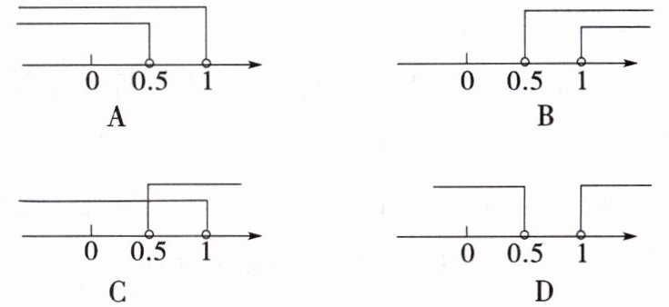 4. 已知点$M(1 - 2m,m - 1)$关于原点的对称点在第一象限,则$m$的取值范围在数轴上表示正确的是(