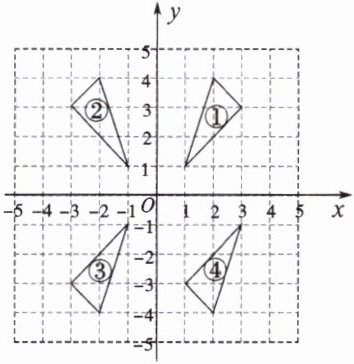 2. 在如图所示编号为①②③④的$4$个三角形中,关于$y$轴对称的两个三角形的编号为$$
