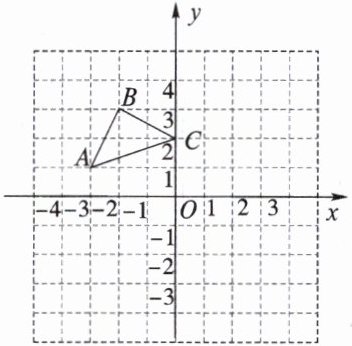 $\triangle ABC$的坐标为$A(-3, 1)$,$B(-2, 3)$,$C(0, 2)$。