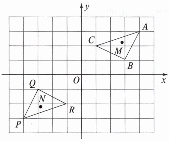 (3)根据你发现的特征解答问题:若$\triangle ABC$内有一个点$M(2a + 5,1 - 3b)$经过变换后,在$\triangle PRQ$内的坐标变为$N(-3 - a,-b + 3)$,求$a$,$b$的值.