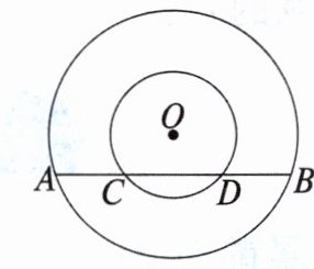【例2】如图,在以O为圆心的两个同心圆中,大圆的弦AB交小圆于C,D两点。你认为AC和BD有什么关系?为什么?