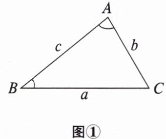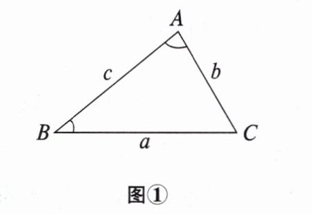 如图①,顶点 $ A $ 所对的边 $ BC $ 用 $ a $ 表示,顶点 $ B $ 所对的边 $ AC $ 用 $ b $ 表示,顶点 $ C $ 所对的边 $ AB $ 用 $ c $ 表示.