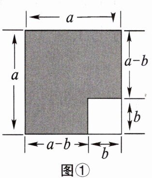 图①中阴影部分的面积为 $a^2 - b^2$,