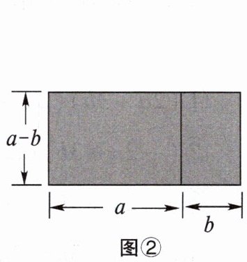 图②中阴影部分的面积为 $(a + b)(a - b)$。
