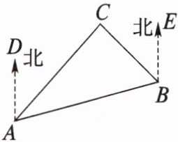 变式:下图是A,B,C这3个岛的平面图,C岛在A岛的北偏东35°方向,B岛在A岛的北偏东65°方向,C岛在B岛的北偏西40°方向.