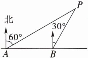 4. 如图,李明同学在东西方向的滨海路A处,测得海中灯塔P在北偏东60°方向上. 他向东走400米至B处,测得灯塔P在北偏东30°方向上. 从灯塔P观测A,B两处的视角∠P的度数是().