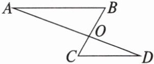 2. 如图,AB//CD,AD和BC相交于点O,∠A = 20°,∠COD = 100°,则∠C的度数是().