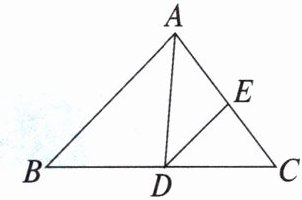 9. 如图,在△ABC中,∠B = 46°,∠C = 54°,AD平分∠BAC,交BC于点D,DE//AB,交AC于点E. 求∠ADE的度数.