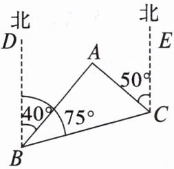 8. 如图,点A在点B的北偏东40°方向,点C在点B的北偏东75°方向,点A在点C的北偏西50°方向. 求从点A观测B,C两点的视角∠BAC的度数.