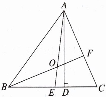21. (8 分)如图,在$\triangle ABC$中,$AD$是高,$AE$,$BF$是角平分线,它们相交于点$O$,$\angle BAC = 60^{\circ}$,$\angle C = 70^{\circ}$.求$\angle CAD$,$\angle BOA$的度数.