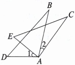 3. 如图,AB = AC,AD = AE,∠1 = ∠2。