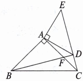 5. 如图,在△ABC,△ADE中,∠BAC = ∠DAE = 90°,AB = AC,AD = AE,点C,D,E在同一直线上,连接BD交AC于点F。