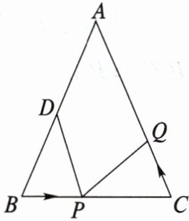 6. 如图,在△ABC中,∠B = ∠C,AB = 10cm,BC = 8cm,点D为AB的中点。点P在线段BC上以3cm/s的速度由点B向点C运动。同时,点Q在线段CA上以相同的速度由点C向点A运动。一个点到达终点时,另一个点也停止运动。当△BPD与△CQP全等时,求点P运动的时间。