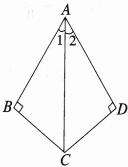 2. 如图,$AB \perp BC$,$AD \perp DC$,$\angle 1 = \angle 2$。