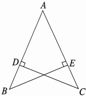 变式:如图,点$D$在$AB$上,点$E$在$AC$上,$BE \perp AC$,$CD \perp AB$,$AB = AC$。