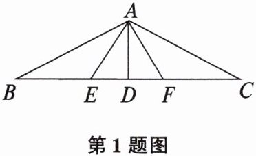 1. 如图,在$\triangle ABC$中,$\angle B = \angle C$,$DE = DF$,$AD \perp BC$于点$D$,且点$E$,$F$在$BC$上,则图中全等的三角形共有(
