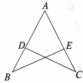 【例】如图,点$D$在$AB$上,点$E$在$AC$上,$AB = AC$,$\angle B = \angle C$。