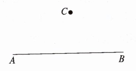 【例】已知直线 $ AB $ 及直线 $ AB $ 外一点 $ C $,利用直尺和圆规过点 $ C $ 作直线 $ AB $ 的平行线 $ CD $.