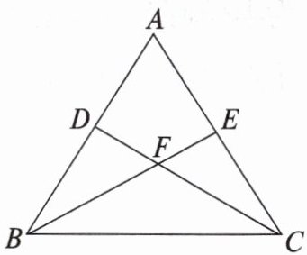 5. 如图,在等腰 $ \triangle ABC $ 中,$ AB = AC $,点 $ D $,$ E $ 分别在边 $ AB $,$ AC $ 上,且 $ AD = AE $,连接 $ BE $,$ CD $ 交于点 $ F $.