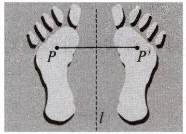 问题:如图,在一张半透明纸的左边部分画一只左脚印,如何由此得到相应的右脚印?