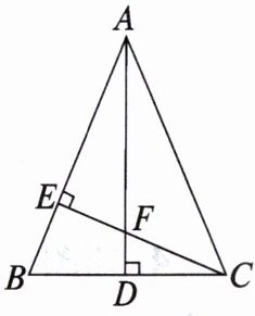 5. 如图,在$\triangle ABC$中,$AB = AC$,$AD ⊥ BC$于点$D$,$CE ⊥ AB$于点$E$,$AE = CE$.