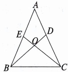 (2)由全等三角形的性质可得∠ABD=∠ACE,由等腰三角形的性质可得∠ABC=∠ACB,得到∠OBC=∠OCB,可得BO=CO,即可得结论.
