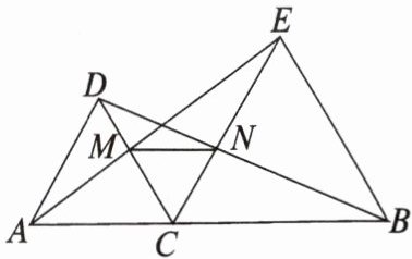 5. 如图,已知点$C$是线段$AB$上一点,$\triangle ACD$,$\triangle CBE$都是等边三角形,$AE$与$CD$相交于点$M$,$BD$与$CE$相交于点$N$.