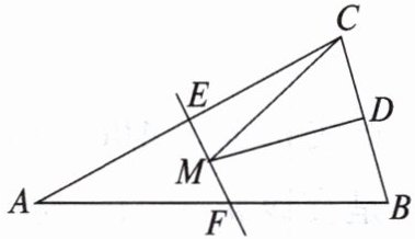 变式:如图,等腰$\triangle ABC$的底边$BC$的长度为$6$,面积是$18$,腰$AC$的垂直平分线$EF$分别交$AC$,$AB$于点$E$,$F$. 若点$D$为$BC$边的中点,点$M$为线段$EF$上一动点,则$\triangle CDM$的周长的最小值为.