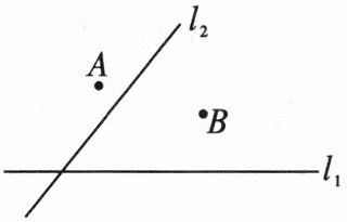 17.(6 分)如图,现有公路 $l_{1}$ 同侧、$l_{2}$ 异侧的两个城镇 $A$,$B$,电信部门要修建一座信号发射塔,按照设计要求,发射塔到两个城镇 $A$,$B$ 的距离必须相等,到两条公路 $l_{1}$,$l_{2}$ 的距离也必须相等. 发射塔 $C$ 应修建在什么位置?找出所有符合条件的点 $C$(尺规作图,保留作图痕迹,不要求写作法).