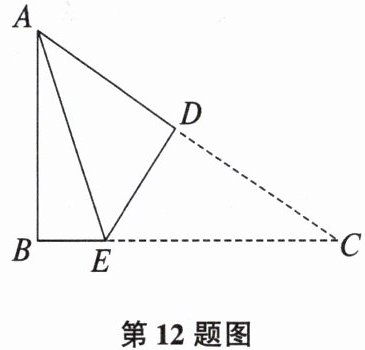 12. 如图,在 $\triangle ABC$ 中,$\angle B = 90^{\circ}$,$AB = 3$,$BC = 4$,线段 $AC$ 的垂直平分线 $DE$ 交 $AC$ 于点 $D$,交 $BC$ 于点 $E$,连接 $AE$,则 $\triangle ABE$ 的周长为